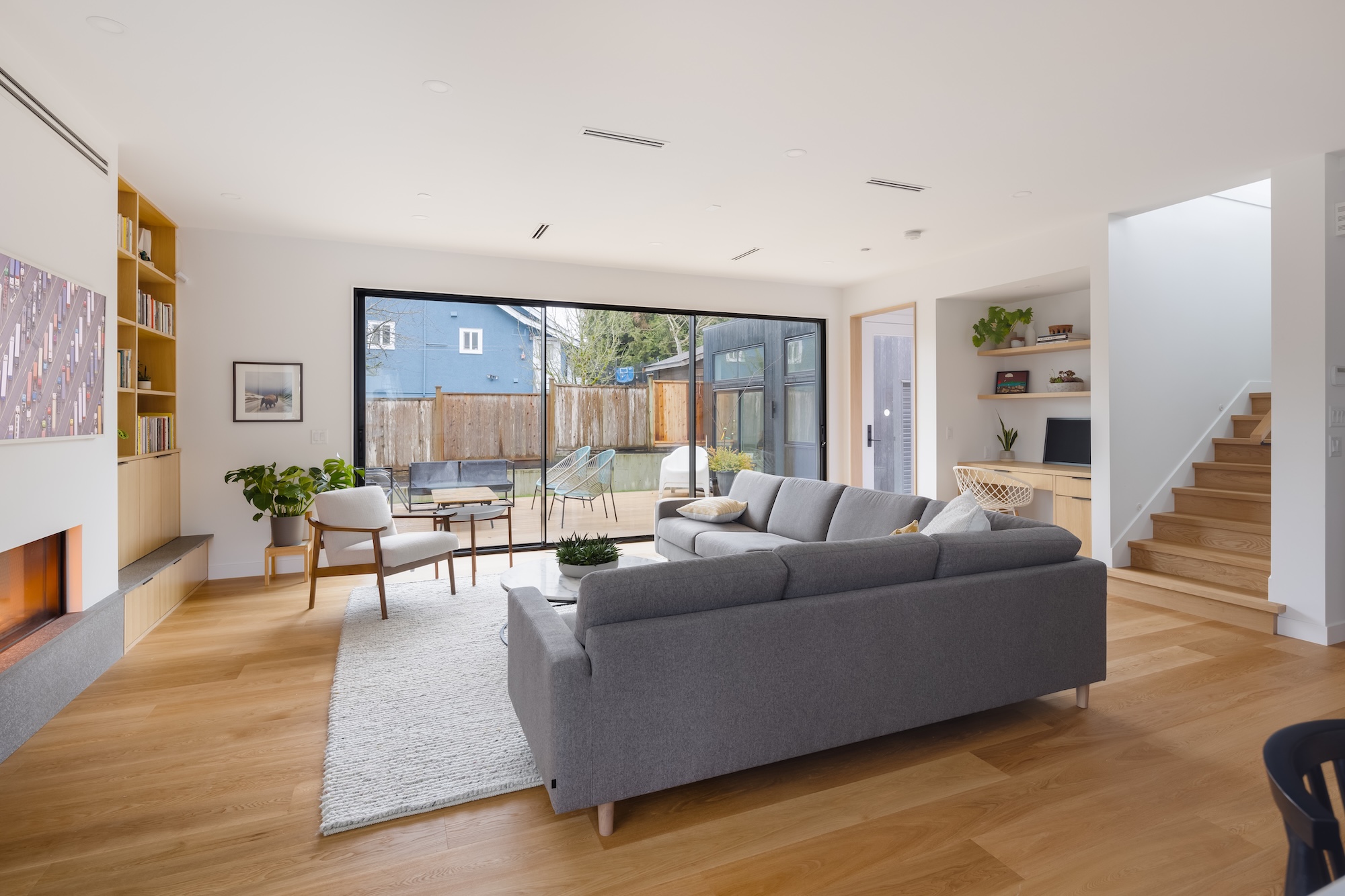 The interior is defined by clean lines, minimal visual clutter, and purposeful built-ins that maximize everyday usability.
