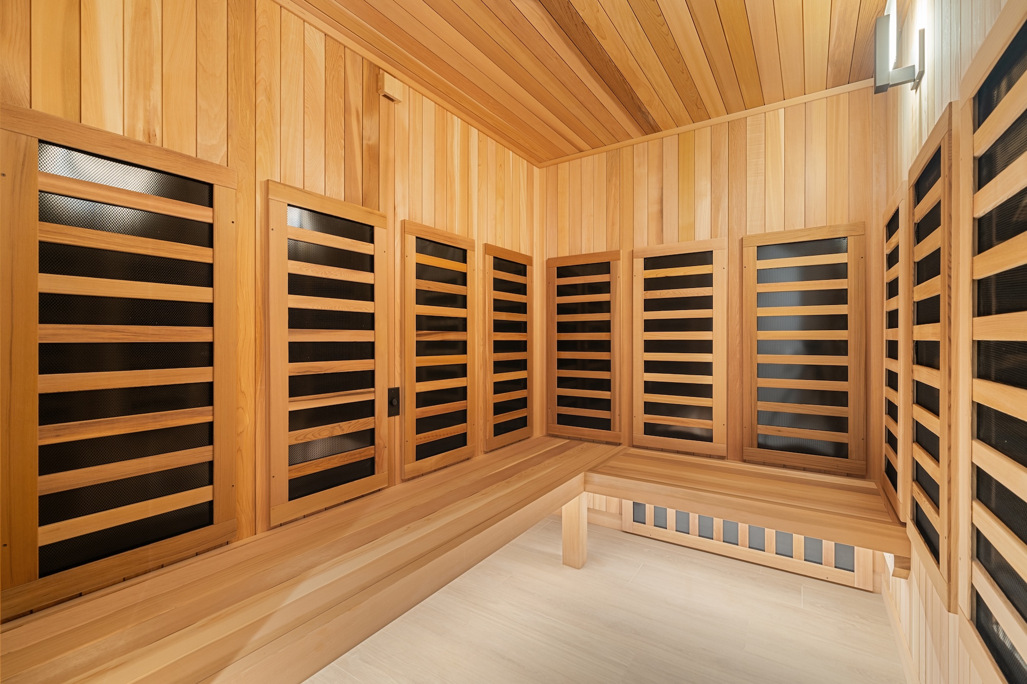 - A large infrared sauna, steam shower, and dedicated gym space support daily wellness routines